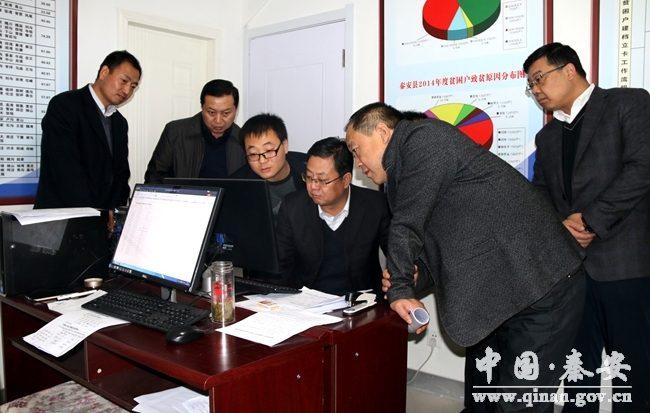 11月14日,秦安县委书记王东红,县人大常委会主任郭海军,县委副书记裴贵军、马志强,县委常委、副县长郭双江,副县长王玉安来到县精准扶贫检测信息中心,就全县精准扶贫大数据平台信息录入审核工作进行了督查指导。县委办、政府办、县扶贫办、县财政局等相关部门负责人一同督查。