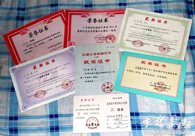 在采访中,卜亨通淡然、低调、有思想,称自己的唯一特长就是“学习”。而他的班主任成其昌告诉记者的远不止如此。“入学以来,他立志高远、个人素质高,动手能力、实验能力、实践能力、探究能力和创新能力等各方面能力都非常强。全国、省、市、县、校各级各类各科竞赛活动多次获奖。2014年8月17至24日参加了由市政府组织的‘日本·亚洲青少年科学交流项目’。今年,在清华大学自主招生中取得优异成绩,通过复试获得加分。”