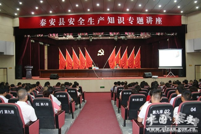 为进一步宣贯中华人民共和国《安全生产法》、《甘肃省安全生产条例》,强化全县安全生产宣传教育工作。按照市安委会的安排,7月5日上午,秦安县举办安全生产知识专题讲座,特邀国家级安全培训师、国家注册安全评价师、四川安科院高级工程师、安全生产标准化国家级考评员、西南交通大学荣誉教授范惠玲在县行政中心二楼礼堂作了安全生产知识专题讲座。讲座由县委副书记、县长程江芬主持,县政府分管领导,各乡镇党委书记、乡镇长、安监站站长、安监员,县安委会成员单位主要负责人和分管安全生产工作的负责人,相关企业负责人和安全管理人员共500多人参加了讲座。