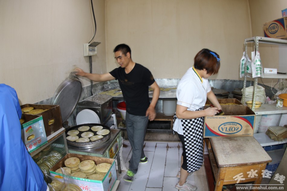 店主是一对夫妻,小伙子叫杜建军,是甘肃秦安县王窑乡人,妻子是来自甘肃庆阳老区的田云云,他们掐指一算,在青海西宁烤香豆饼将近20个年头,小生意助他们奔上了小康路。