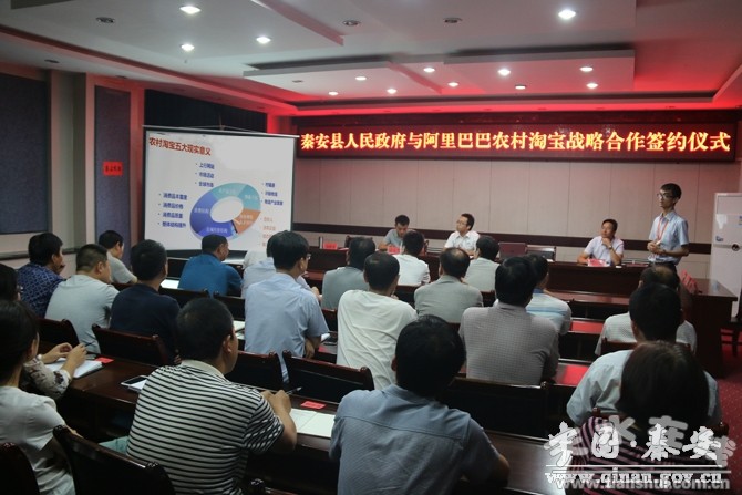9月1日,秦安县人民政府与阿里巴巴(中国)软件有限公司正式签署“农村淘宝”项目合作协议。县委副书记、县长程江芬,副县长毕胜、刘殿龙,阿里乡村事业部、中西部大区业务部甘肃区域经理黄稳,阿里乡村事业部、中西部大区业务部高级运营经理陆东升,各乡镇相关负责人、县直有关单位负责人参加了会议。签约仪式由副县长毕胜主持。