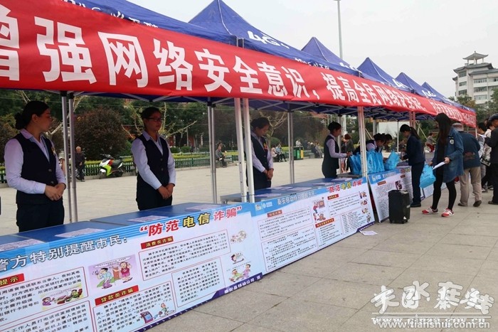 本次活动展示了警方提示、防范电信诈骗、预防诈骗温馨提示和电信诈骗案例等内容的展板,发放“谨防电信诈骗”宣传资料、网络安全知识有奖答题和现场讲解等形式直接给广大市民宣传了解日常生活中的电信诈骗方式,增强市民网络安全知识,提高网络安全意识,达到共同抵制网络谣言,有效打击互联网违法犯罪的目的。现场展出各类网络安全展板20余张,发放网络安全资料3000多份,开展有奖问答90多人次,解疑释惑网络安全问题120多人次。