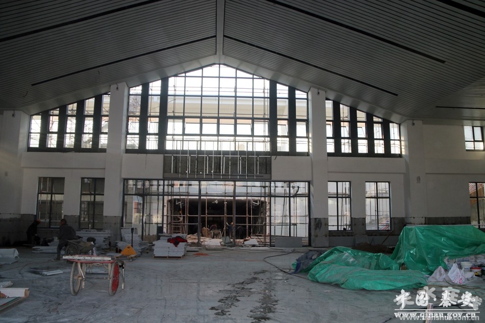 当来到来到秦安站站房,也就是将来的高铁站候车大厅,一进入大厅,眼前立刻豁然开朗,给人感觉高、亮、透。在大厅内,几十名工人正在紧张地忙碌着。在这里,地面的铺设已经基本完毕,相关电力及排水设施也已基本铺设完毕。