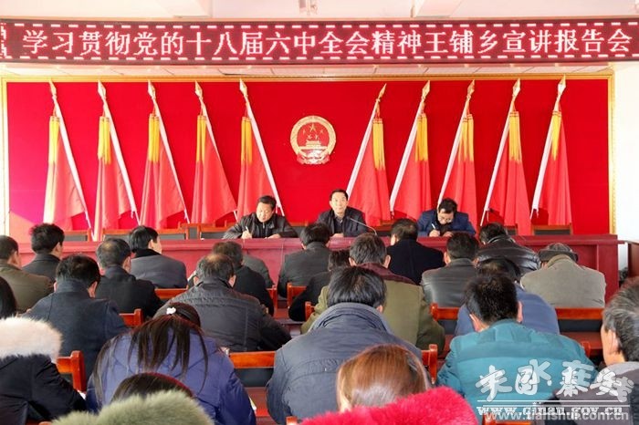 杨仁义强调,党的十八届六中全会是在我国进入全面建成小康社会决胜阶段召开的一次十分重要的会议。习近平总书记在全会上发表的重要讲话高屋建瓴,思想深刻,闪耀着马克思主义真理的光芒,是指导当前和今后一个时期党和国家工作的纲领性文献。王铺乡广大党员干部要把学习贯彻十八届六中全会精神作为当前和今后一个时期的重要政治任务,切实抓紧、抓实、抓出成效。要把学习贯彻党的六中全会精神与“两学一做”学习教育紧密结合,认真研读《准则》、《条例》和总书记系列重要讲话精神原文,掌握全会精神的基本内容和丰富内涵;要在学习贯彻六中全会精神的基础上,扎实推进精准扶贫、村“两委”班子换届、果椒建园和产业路建设等各项重点工作,同时要科学谋划好明年各项工作,推动全乡经济社会和党的建设全面发展。