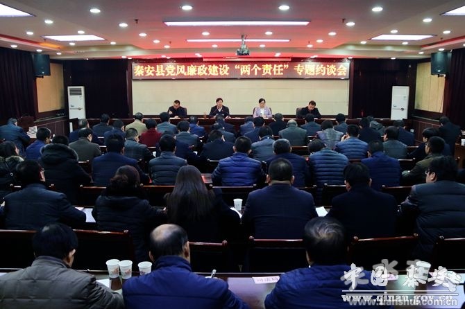 12月27日,秦安县委书记王东红主持召开全县党风廉政建设“两个责任”专题约谈会,旨在进一步厘清责任体系,强化压力传导,切实将全县各级党委(党组)、纪委(纪检组)的思想和行动统一到中央和省市县委的部署要求上来,确保全面从严治党主体责任不折不扣落到实处。