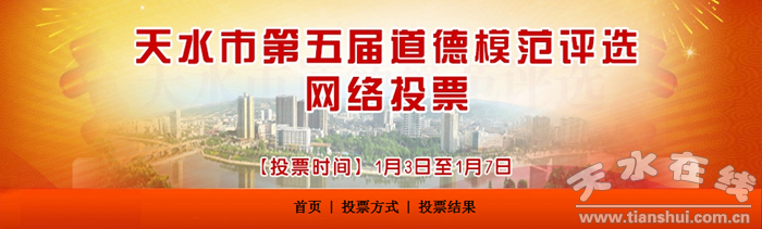 网络投票:1月3日开始,天天天水网(http://www.tsrb.com.cn)刊载天水市第五届道德模范评选表彰活动专题,可在活动页面直接参与投票。