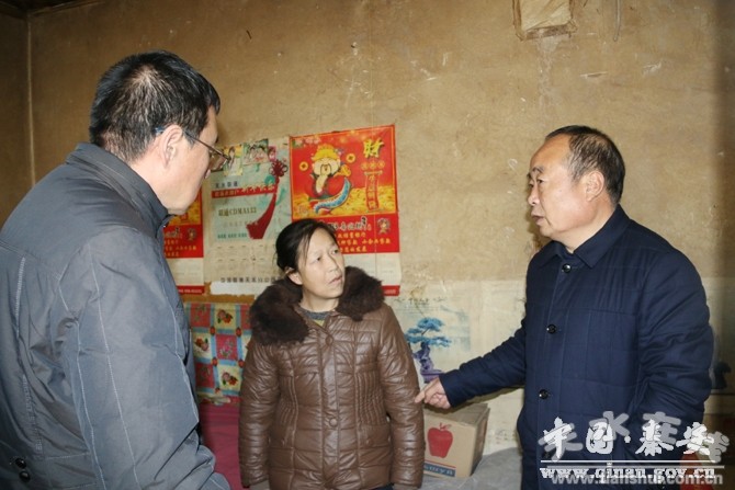 1月13日,天水市人大常委会副主任张克强一行,深入双联行动联系点秦安县五营镇王洼村开展双联慰问活动,同时给他们送去新春的祝福和诚挚的问候。县人大常委会主任郭海军一同参加慰问活动。