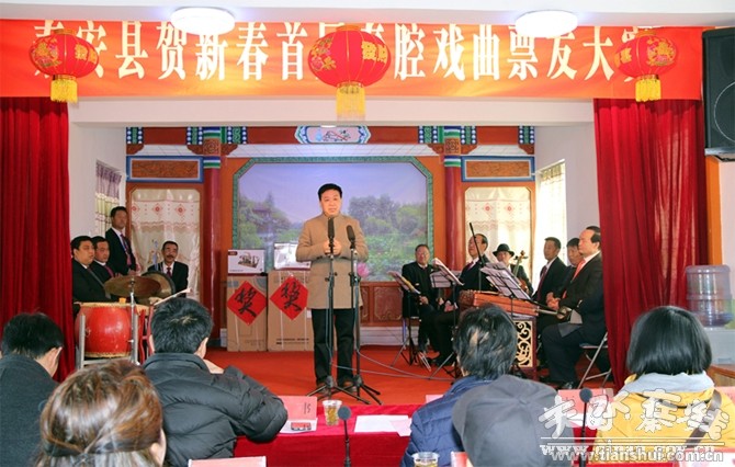 陕西戏曲研究院秦腔团团长李书,县委宣传部、县文广局、县委外宣办、县电视台、县文化馆相关负责人以及票友大赛参赛人员,秦腔爱好者参加了票友大赛开唱仪式。