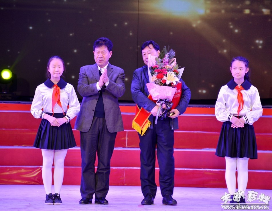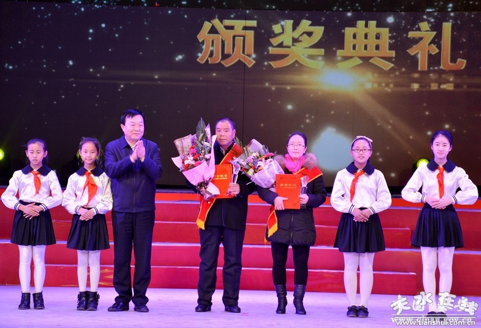(市政协主席张明泰为"奉献天水·十大人物”获得者侯天才颁奖)