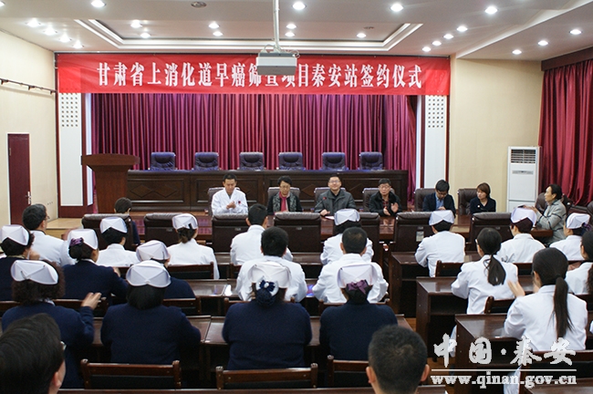 3月2日,甘肃省上消化道早癌筛查项目秦安站签约仪式在秦安县人民医院举行。兰大一院东岗分院毛亦佳副院长,重庆第三军医大学新桥医院赵晓晏教授,日本京都第二红十字病院胃肠病科及消化内镜中心铃木安昙教授,秦安县政府副县长吴豪伟出席签约仪式。县卫计局部分班子成员及县医院部分干部职工参加签约仪式。