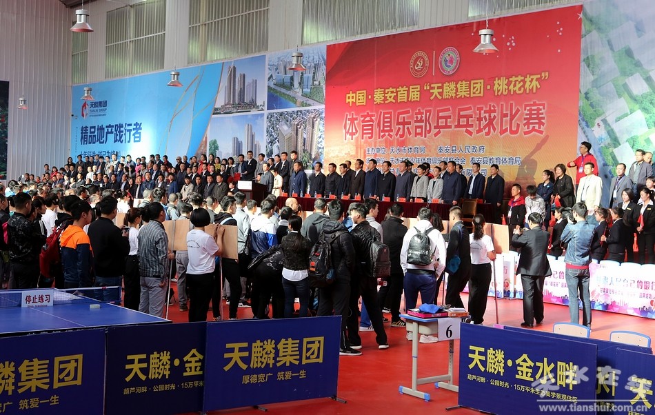 成纪大地举盛事,桃花绽放迎宾客。4月22日上午,在雄壮的国歌声中,中国·秦安首届“天麟集团·桃花杯”体育俱乐部乒乓球比赛开赛仪式在甘肃福雨塑业有限责任公司比赛场馆举行。
