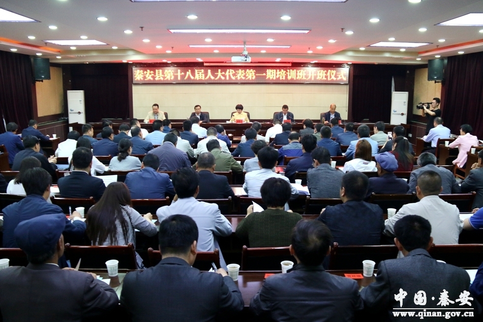 5月18日,秦安县第十八届人大代表第一期培训班在县行政中心开班。县人大常委会主任郭海军出席开班仪式并讲话。县委副书记裴贵军,县委常委、县政府副县长王彦军,县委常委、兴国镇党委书记王明,县人大常委会副主任王蓉、宋捷、张来禄、张耀清、陈应虎,县政府副县长丁迟成等出席开班仪式。市人大常委会副主任王晓琴、市人大常委会代表人事工委副主任高峰应邀出席开班仪式。开班仪式由县人大常委会副主任宋捷主持。