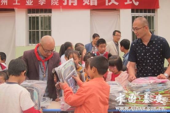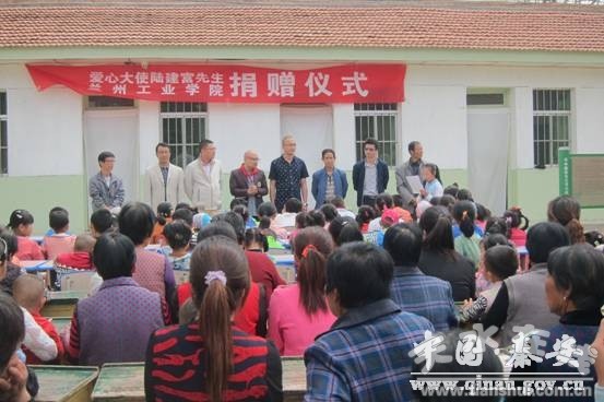 中国狮子联会姑苏分会服务队陆建富狮兄与兰州工业学院携手向全校捐赠爱心校服64套,书包64个,价值五千余元人民币。同时,还捐设了爱心图书室。捐赠仪式在热烈欢快的气氛中进行。仪式上,全体起立升国旗唱国歌。