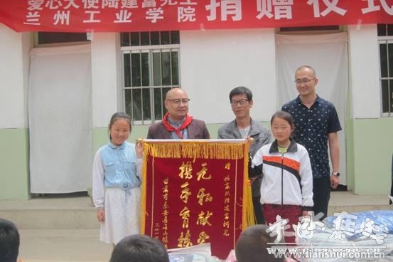 捐赠方代表中国狮子联会姑苏分会服务队陆建富狮兄作了即兴发言,他说他们将兰州工业学院帮扶的潘河村作为今后长期的资助点,关心教育,关爱留守儿童是义不容辞的责任,并表示将资助范围逐步扩展。潘河小学代表向捐赠方敬赠了锦旗。潘河小学学生代表潘苗苗向捐赠方表达由衷的感谢,并立下志愿,刻苦学习,努力钻研,长大后回报社会,建设祖国。