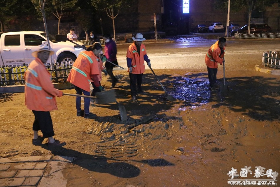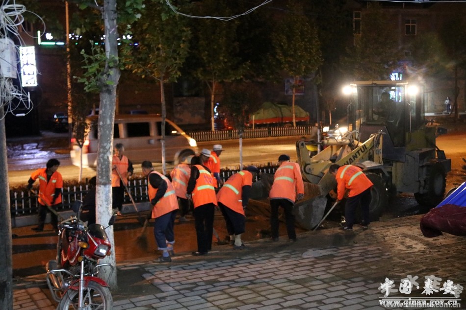 秦安县启动应急处置预案,及时采取措施,由县环卫所组织干部职工,进行了全面的道路淤泥清扫保洁工作。当晚,出动大小清洗、清运机械车辆12台(辆),在城区解放路上关口至加油站、太白街等主次干道,对路面污泥淤积区域进行了不间断清理清洗。