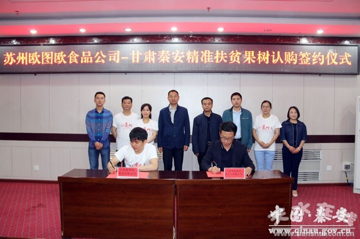 5月18日,苏州欧图欧食品有限公司与天水华园果业进出口有限公司果树认购协议签订仪式在县行政中心举行。县政府副县长王玉安,县政协副主席、扶贫办主任高飞参加签订仪式。在签订仪式上,两家企业共签订了5万棵的果树认购协议。