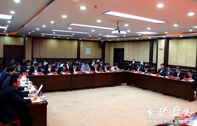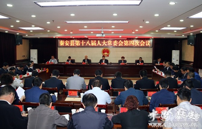 5月26日,秦安县第十八届人大常委会第四次会议在县行政中心三楼北会议室召开,会议分别由县人大常委会主任郭海军、副主任张来禄主持,县人大常委会副主任王蓉、宋捷、张耀清、陈应虎和常委会委员出席会议。县政府副县长刘殿龙,县法院、政府办、编办、教体局、财政局、人社局、发改局、住建局、国土局、环保局、审计局、城管执法局、规划局负责人,不是县人大常委会组成人员的县人大常委会各工委负责人,五营镇、陇城镇、云山镇人大主席,部分县人大代表列席了会议。