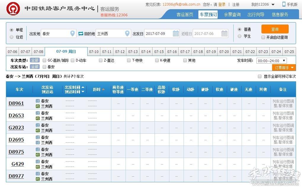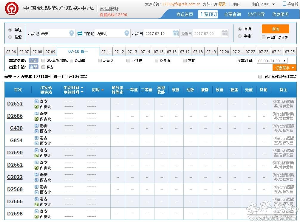 中午12时,记者从中国铁路客户服务中心网站上经查询获悉,7月9日,从秦安开往兰州西的动车有7趟,从秦安开往西安北的动车有5趟;7月10日,从秦安开往兰州西的动车增至14趟,从秦安开往西安北的动车增至10趟。