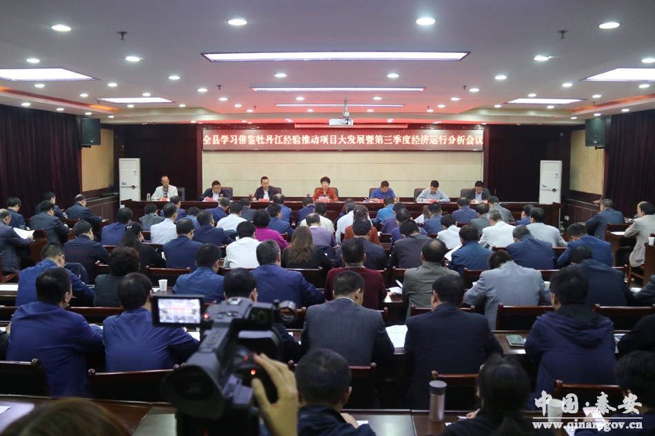 9月22日, 秦安县召开全县学习借鉴牡丹江经验推动项目大发展暨第三季度经济运行分析会议,传达学习9月14日唐仁健省长在调研秦安时的指示精神,进一步学习借鉴牡丹江抓项目促发展的经验,研判当前经济形势,安排部署下一阶段经济工作,推动全县经济持续平稳向好。县委副书记、县长程江芬,县委常委、常务副县长王彦军,县委常委、组织部部长杨栋,副县长于剑锋、丁迟成、吴豪伟、李广宇出席会议,各镇镇长,县直有关部门和驻秦有关单位主要负责人共计100余人参加了会议。