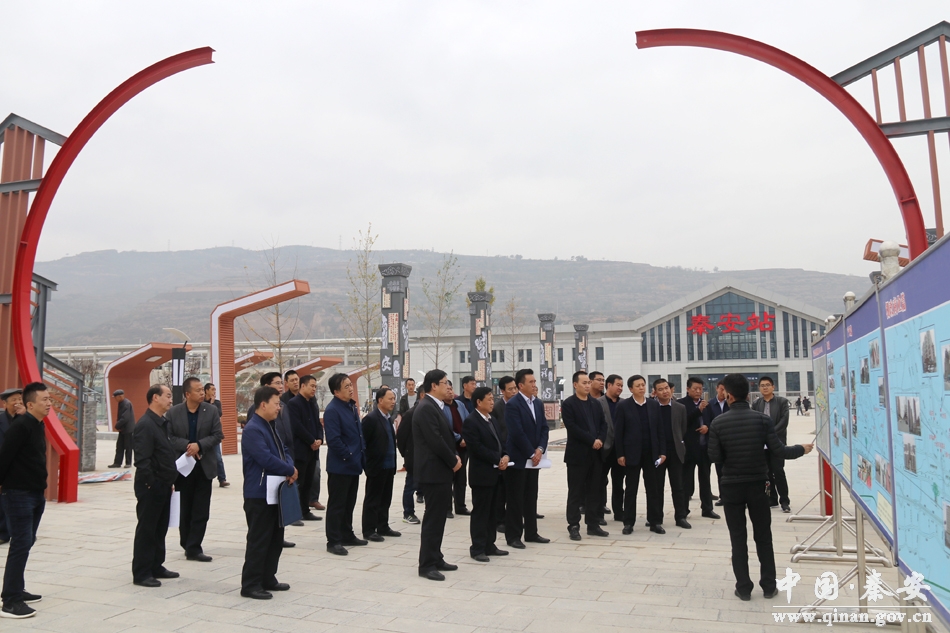 考察团一行先后深入宝兰客专秦安站站前广场、欣悦园棚户区改造安置小区、兴国镇何川区域及庆华苑安置小区、郑川新城建设现场、秦安一中、凤山景区延伸工程建设现场、时代丽都小区等地进行了实地考察。