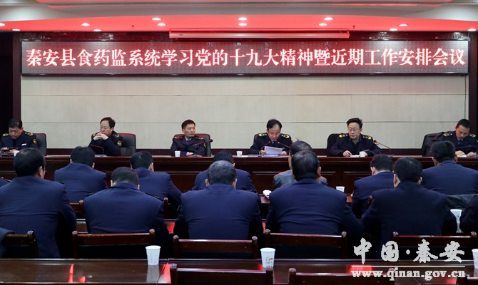 11月13日上午,秦安县食药监局召开了学习贯彻党的十九大精神暨近期工作安排会,局班子成员,各镇食药监所所长、县食品药品稽查局、县食品药品检验检测中心及各股室负责人共计30余人参加了会议。