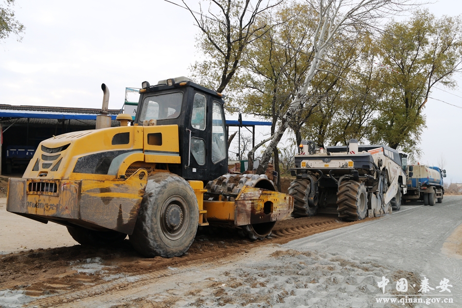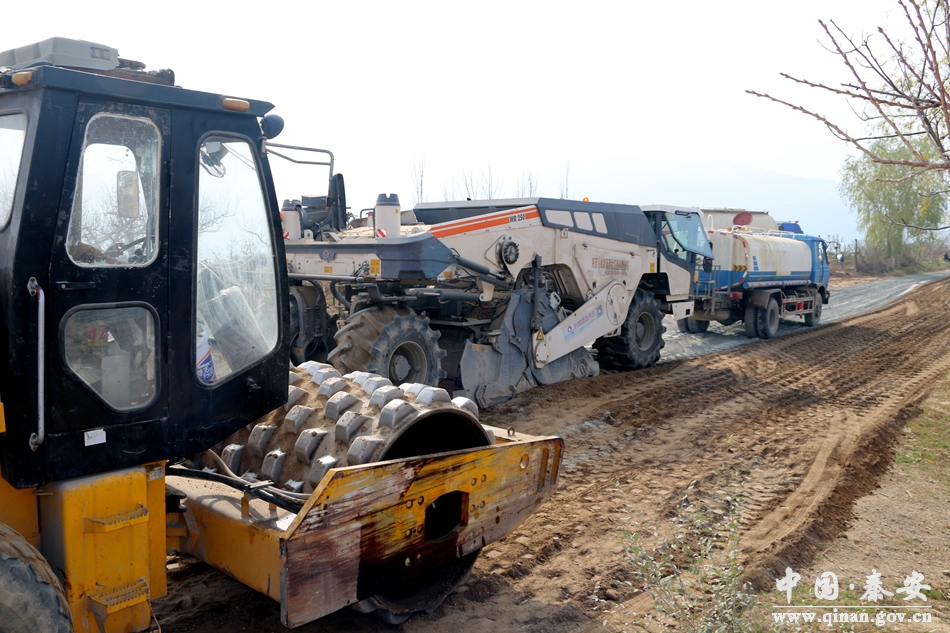 X462线兴国至刘坪段是秦安县首次采用冷再生技术改建的路段,该路段沿线途经10多个行政村,人口密度大、村庄较多,苹果、桃等农产品种植面积广,是秦安县一条主要的干线公路,由于运营时间长、部分路段路基路面沉降,加之近年来受大型运输磷矿石车辆的碾压,路基路面沉陷、损毁严重,安全隐患十分突出。为解决农村群众出行难和农产品运输难问题,进一步加强交通项目建设与脱贫攻坚的深度融合,实现“交通+特色产业扶贫”和“交通+旅游扶贫”的有机结合,今年,县委、县政府将该工程纳入2018年县乡道改建计划。该路段全长17公里,三级公路技术标准,路基宽度7.5米,路面宽度6.5米,两侧各0.5米混凝土路肩。路面结构采用7厘米沥青混凝土面层+20厘米水泥稳定碎石基层+原路结构层冷再生混合料下基层,项目批复总投资3736万元。工程于今年10月正式启动,目前已完成路基加宽15公里,路面冷再生混合料下基层9公里,混凝土路肩4公里,完成投资650万元,全部工程预计2018年5月完工。