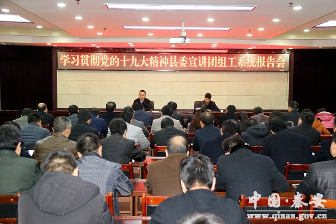 12月15日,秦安县委常委、组织部部长杨栋为全县组工系统干部宣讲了党的十九大精神。各镇党委副书记、党建办主任,县委组织部、老干局、人社局等部门干部百余人聆听了宣讲会。