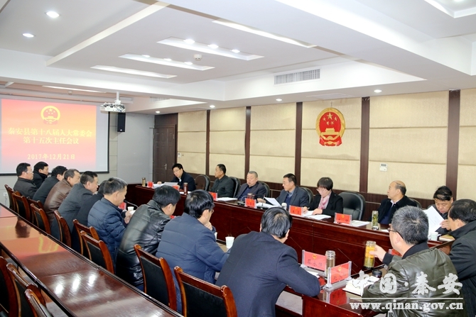 12月21日,秦安县第十八届人大常委会召开第十五次主任会议。会议由县人大常委会主任郭海军主持。县人大常委会副主任王蓉、杨尚武、宋捷、张来禄、张耀清、陈应虎出席会议,县人大法制委员会副主任委员、常委会办公室、各工委负责人列席会议。