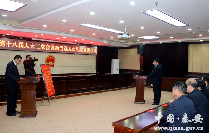 (新当选的十八届县人大常委会委员向宪法宣誓)