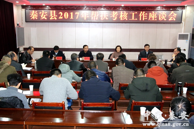 1月4日,秦安县2017年省级驻村帮扶考核工作座谈会召开,考核组副组长、省绿委办副主任郭平,秦安县委副书记裴贵军、陈扶汉及省驻村帮扶单位第一书记、成员,县相关部门负责人参加了会议。