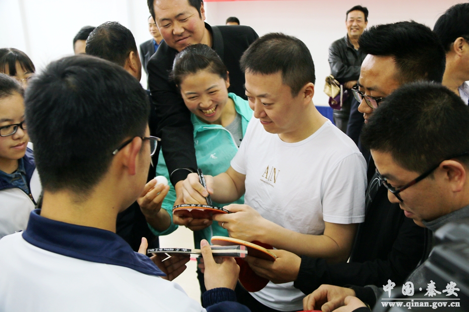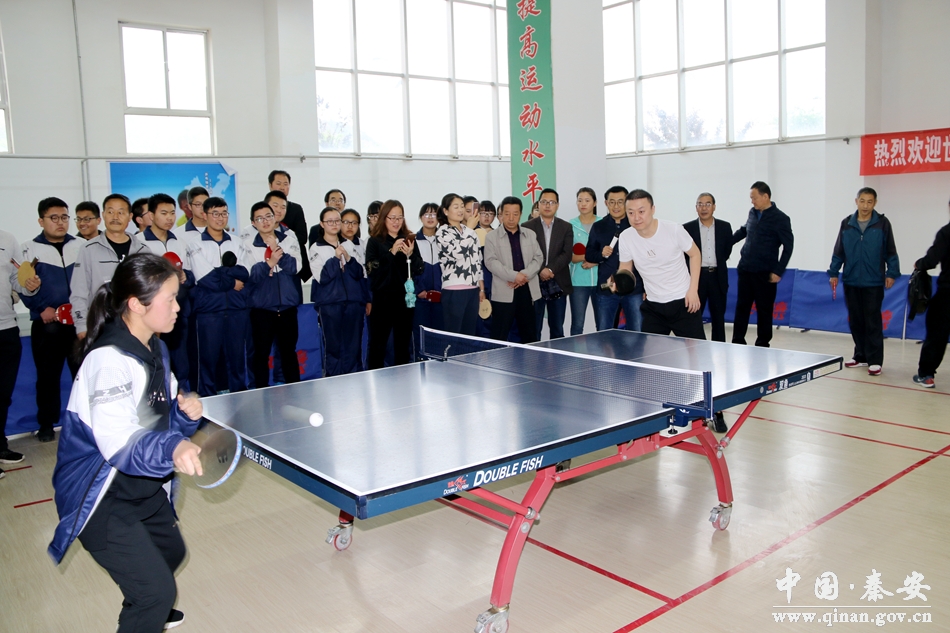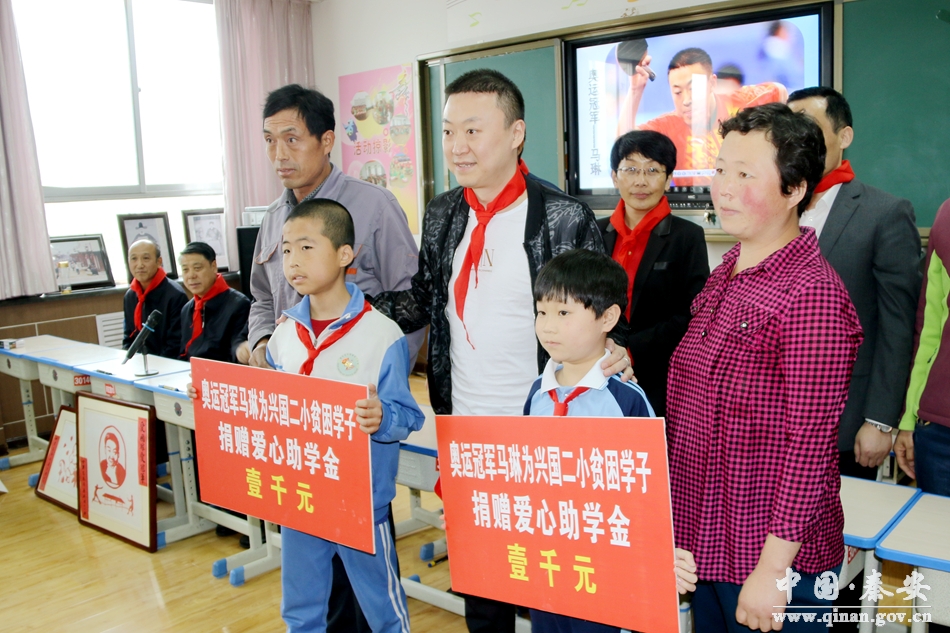 4月30日,原中国男子乒乓球队教练、世界冠军、2008年北京奥运会男单、男团冠军马琳先后来到秦安县第一中学、兴国镇第二小学分别开展了乒乓球教学和爱心助学活动。王东红、郭海军、程江芬等县四大组织在家领导一同参加活动。