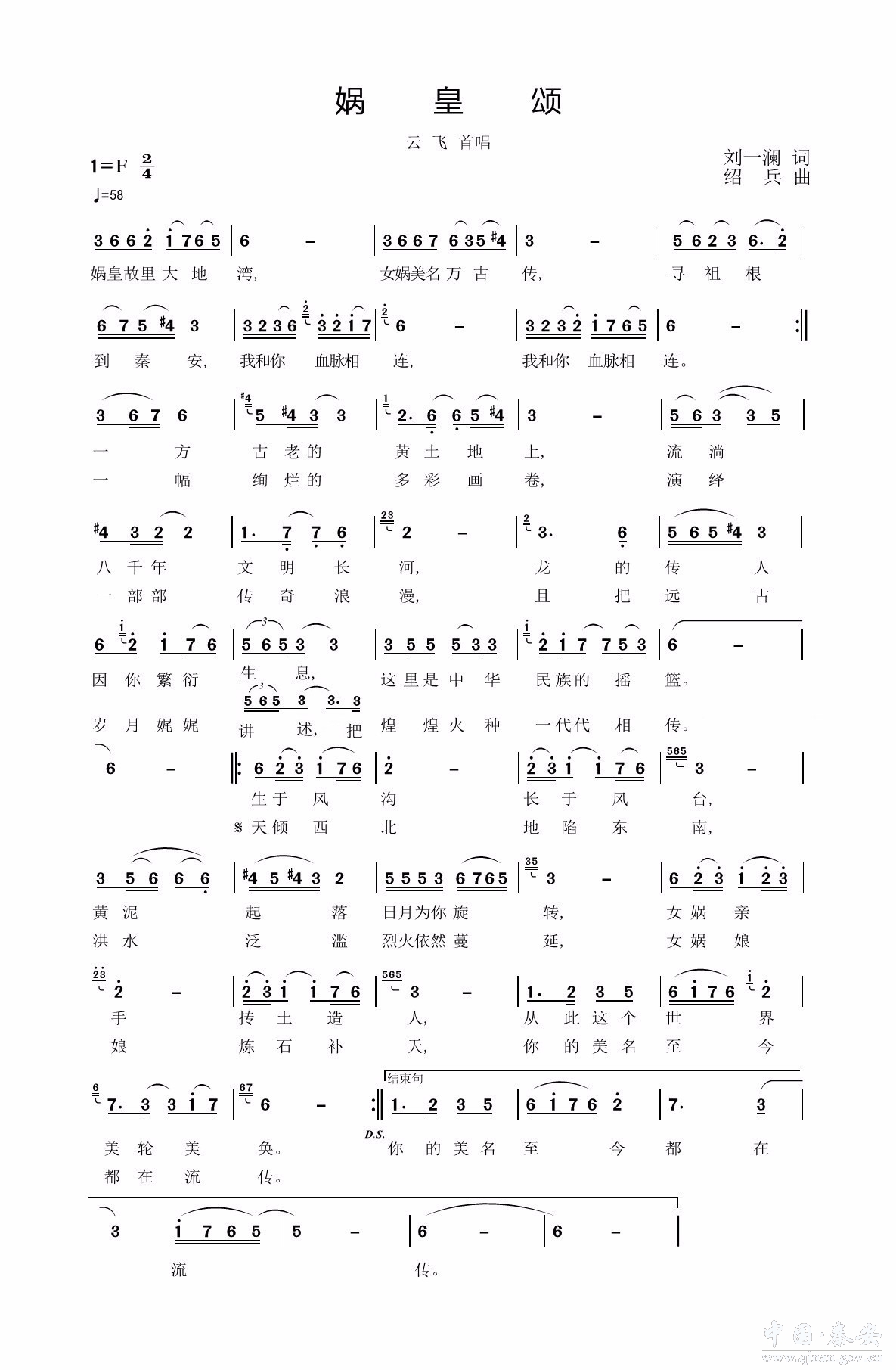 (歌曲:《娲皇颂》 演唱者:云飞)