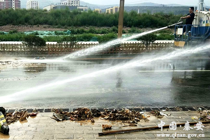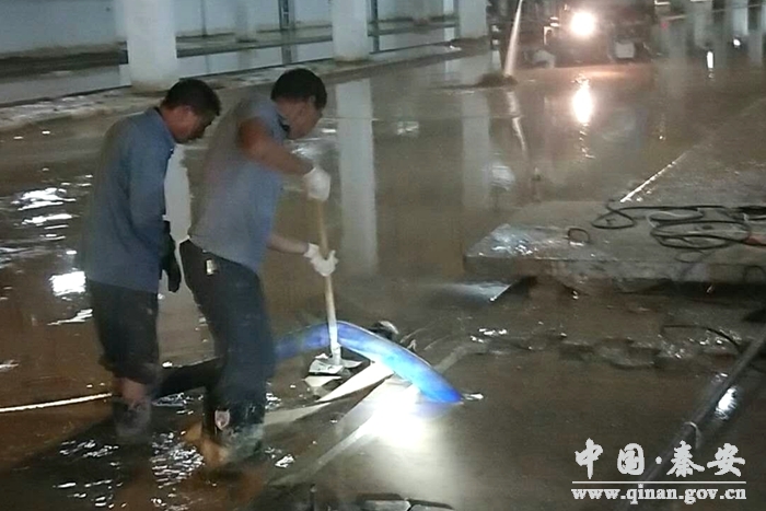 在城区,6月29日晚的一场暴雨致使秦安高铁站路段排水系统堵塞,路面出现大面积积水,接到险情后,县消防大队、县路政系统、环卫所等部门连夜出动,第一时间开展排水、清淤等工作。在现场,记者老远的闻到掀开的地下井盖和已经清理出来的垃圾、污泥发出阵阵恶臭,几十位清淤工人面不改色,穿着雨鞋拿着工具在下水道里,一簸箕一簸箕地把黑乎乎的淤泥铲出,堆放在路面,等待运渣车运走。