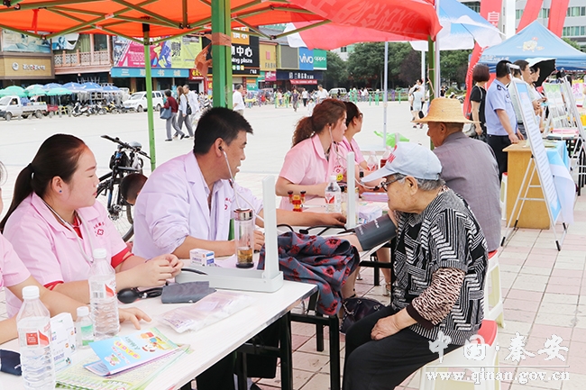 7月17日,县食药监局、农业局、卫计局等16个食安委会成员单位及部分食药品企业工作人员在县文化广场举办了主题为“尚德守法,食品安全让生活更美好”的宣传活动,县人大常委会副主任张耀清、县政府副县长于剑锋查看并指导活动。