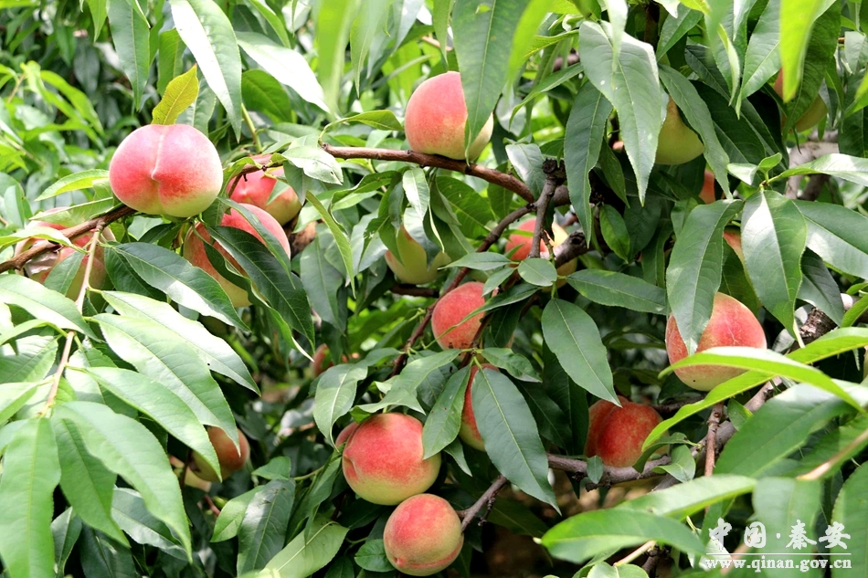 近年来,秦安县立足县情,按照因地制宜、突出特色、合理布局、深度开发、提高效益的原则,把做大做强做优蜜桃产业作为富民强县的重大战略,以推广先进实用技术和实施品牌培育为重点,大力发展蜜桃特色产业,截止2017年底,该县桃树栽培面积达10.2524万亩,挂果面积9.45万亩,产量133245吨,产值达37308.6万元。已建成万亩蜜桃基地2个,千亩以上桃基地20处,蜜桃专业村64个,设施日光温室桃棚402座,全县栽植桃树的农户有17000余户。先后引进栽植早、中、晚熟鲜食桃品种100多个,早熟品种春艳、春蕾、早花露等品种主要分布在葫芦河流域兴国、西川等乡镇的川道区,栽植面积1.26万亩;中熟品种沙红桃、仓方早生、红桃、大久保等品种主要分布在兴国、西川、叶堡、王尹等7乡镇的浅山区,栽植面积6.39万亩;晚熟品种八月脆、处暑红、秦王桃等品种主要分布在安伏、刘坪、郭嘉等乡镇的川道及浅山区,栽植面积2.59万亩。