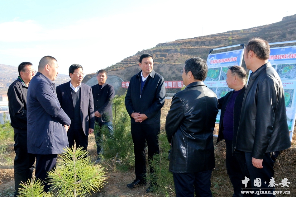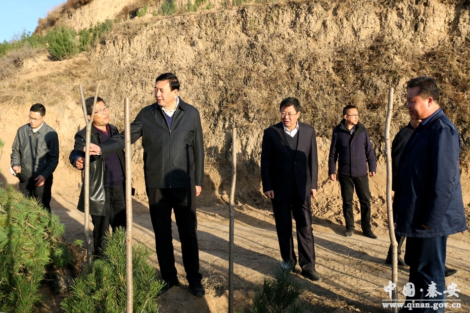 赵卫东一行先后来到西川镇和兴国镇部分造林绿化点,通过实地查看、听取汇报、与干部群众交流等方式详细了解了秦安县秋冬季造林绿化工作开展情况。