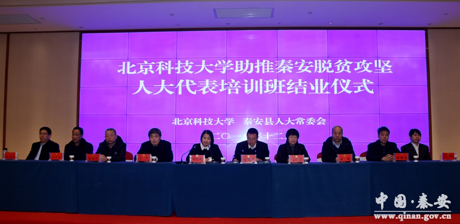 12月9日,北京科技大学助推秦安脱贫攻坚人大代表培训班圆满完成了各项学习培训任务后举行结业典礼。北京科技大学马克思主义学院党总支书记段晓芳,北京科技大学马克思主义学院教授、博士生导师左鹏,县人大常委会主任郭海军、副主任王蓉、杨尚武、宋捷、张来禄、张耀青、陈应虎,县政府副县长沈崴和部分省、市、县、镇四级人大代表参加了结业典礼。