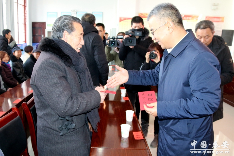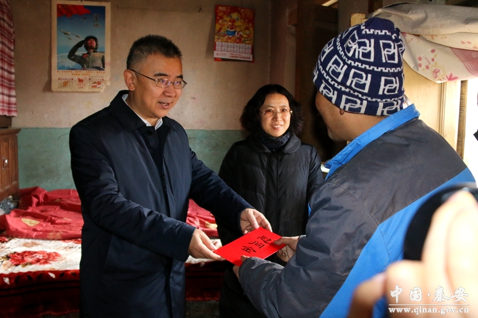 在映南社区赵四辈一行集中慰问了,低保户、老党员、困难党员、优秀党员、残疾人家庭等,并送去了慰问金。在秦安县中心敬老院,市领导看望慰问了敬老院里的孤寡老人及孤儿等,送去慰问金,祝福他们身体健康、新春愉快,过一个辛福美好的春节。赵四辈要求秦安县各级党政组织和广大党员干部要经常深入基层,体察民情,了解民意,及时掌握城乡弱势群体的生产生活状况,倾听他们的呼声,落实好各项利民惠民政策,想方设法解决困难群体在生产生活中的困难和难题,让他们度过一个欢乐祥和的新春佳节。