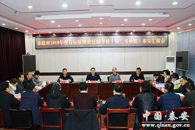 1月23日,市政府副秘书长、外事侨务办主任张有信带领市政府第二考核组来秦安县,就2018年目标管理责任制完成情况进行考核。县委常委、宣传部部长徐东明,县政府副县长于剑锋陪同考核。
