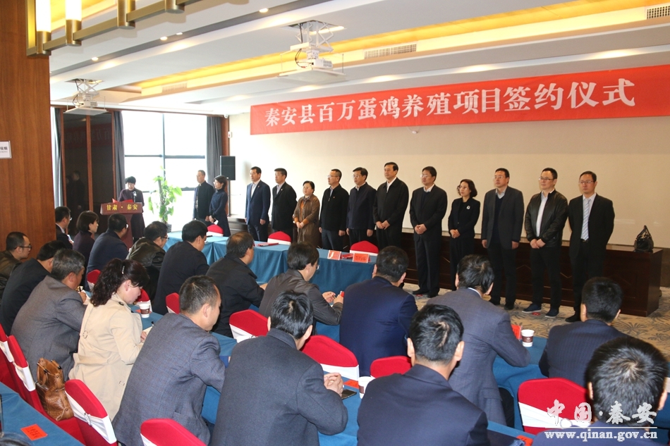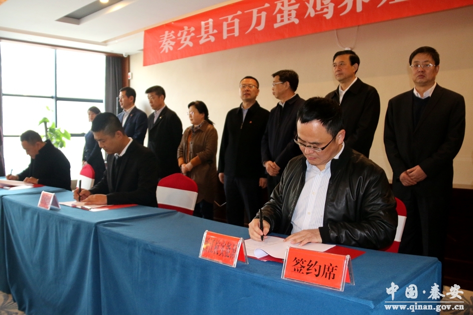 3月28日,秦安县与四川省绿科禽业有限公司、浙江杭实能源服务有限公司举行百万蛋鸡养殖项目签约仪式,该项目既是秦安县在蛋鸭养殖实践成功的基础上,大力发展“短平快”产业的又一重要举措;也是立足全县90万亩林果资源,加快发展循环农业、壮大县域经济的有力抓手。项目的落地实施必将有效增加全县贫困户收入,对助推秦安县如期实现脱贫摘帽、与全国一道全面建成小康社会具有重要意义。