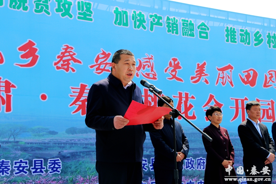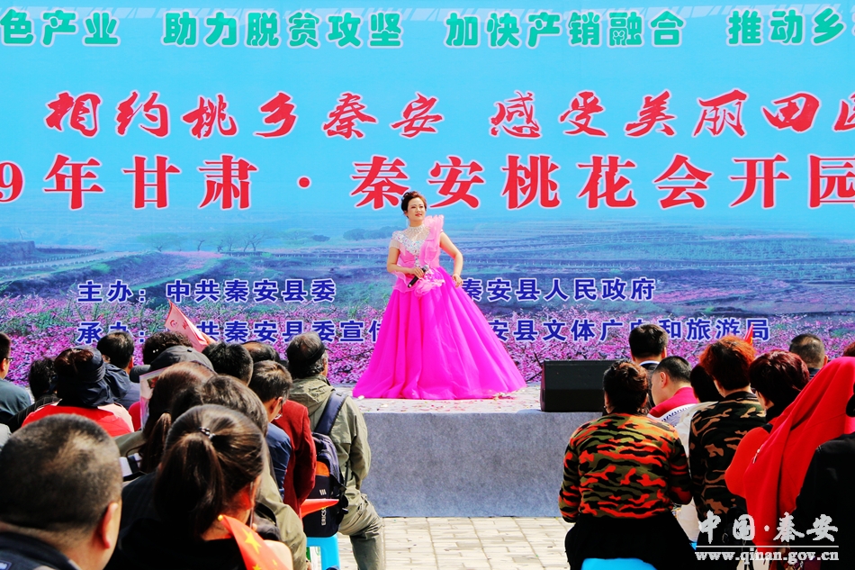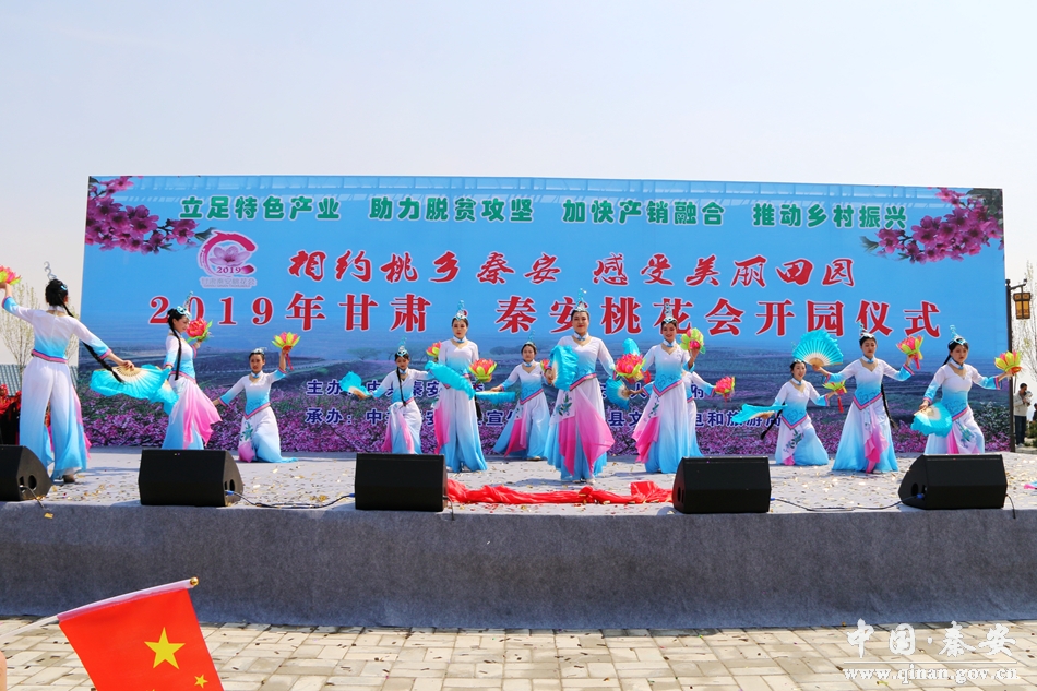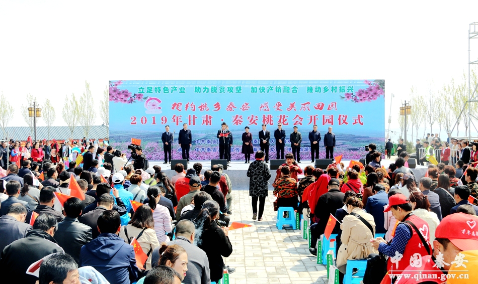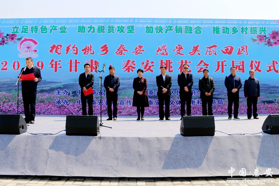 开园仪式上,县委常委、宣传部长文斌在仪式中作了致辞;县委副书记、县长程江芬宣布“2019年甘肃秦安桃花会”开园。开园仪式由副县长李东海主持。