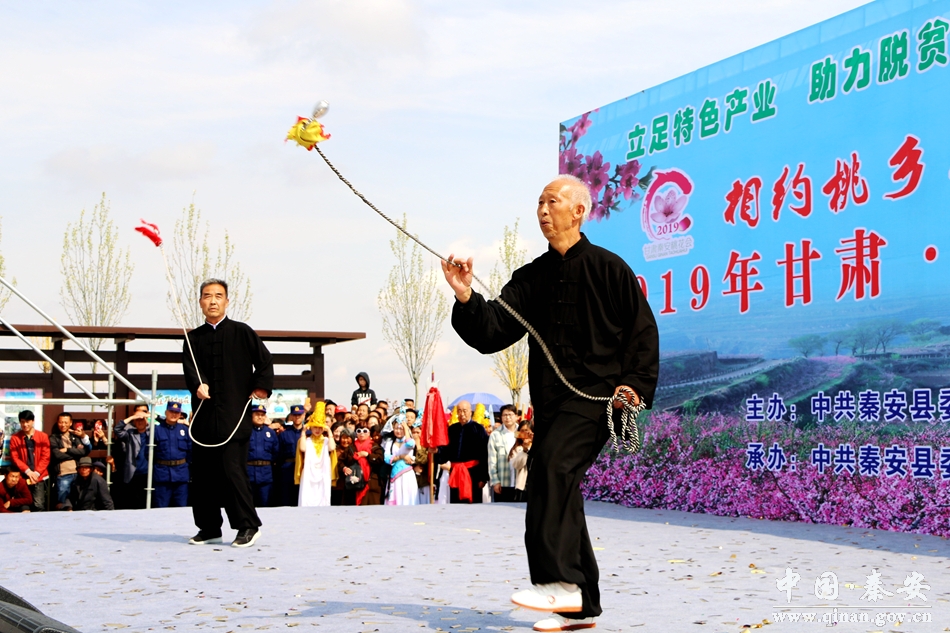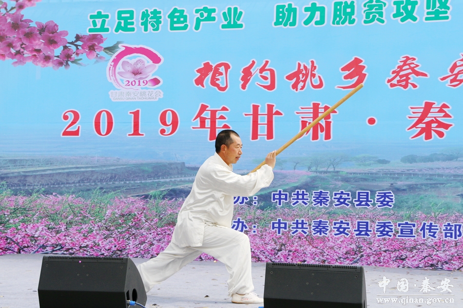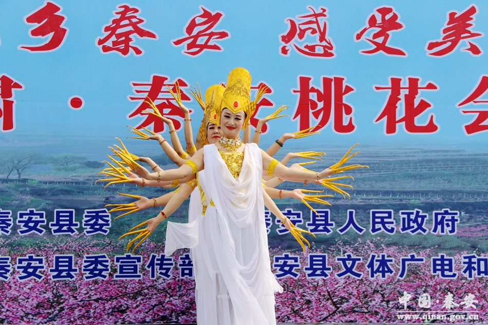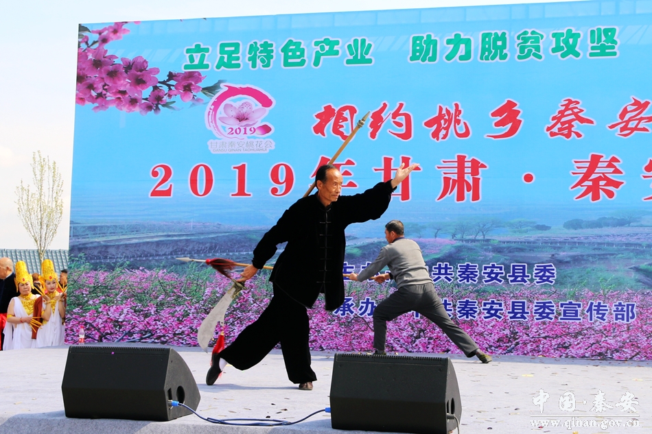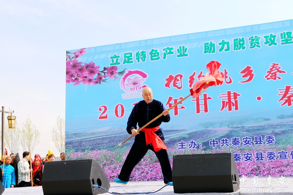 开园仪式结束后,前来参加开园仪式的嘉宾及游客现场观看了文艺演出。在演出中,富有秦安特色的非遗节目蜡花舞、羊皮扇鼓舞让外地游客大开眼界,独唱、武术表演、广场舞、秦腔等节目轮番上演,让现场的游客在观赏美丽桃园的同时,也为游客送上了文艺盛宴。
