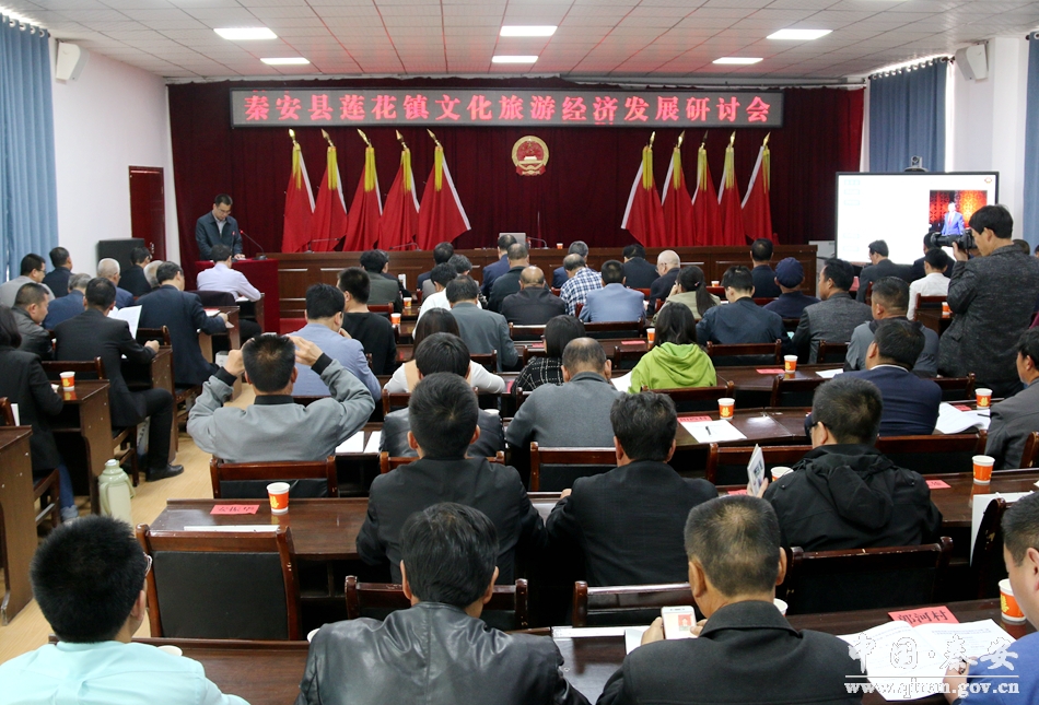 阳春四月,清水河畔的莲花镇桃花争艳、绿意浓浓。4月20日, 秦安县莲花镇文化旅游经济发展研讨会在这里举行。浙江工商大学教授、中华伏羲文化研究会副会长、中央电视台“百家讲坛”主讲人徐日辉,中国航天电研所副总工程师(正军级、少将)王满玉,甘肃农业大学副校长、博士生导师、教授余四九,原甘肃省农业银行副行长高万生,县委常委、常务副县长杨喜春,县委常委、宣传部长文斌,《陇上重镇莲花城》编委会成员,莲花镇村干部代表、镇属单位负责人参加了研讨会。