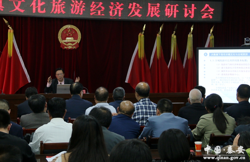 会上,县委常委、宣传部长文斌作了致辞;浙江工商大学教授、中华伏羲文化研究会副会长,中央电视台“百家讲坛”主讲人徐日辉教授作了题为《莲花伏羲文化与全域旅游》的学术研讨报告;与会的专家、学者侯京宝、王满玉、余四九、任子军、赵江东、焦琴声等分别围绕莲花镇主体公园开发、莲花镇博物馆建设、莲花古遗址的保护与维修、莲花镇名优小吃与旅游经济发展配套开发进行发言,并就如何挖掘好、利用好、开发好“伏羲生于甘肃秦安莲花”这张名片,挖掘人文资源,推进文化旅游深度融合发展提出了建议。