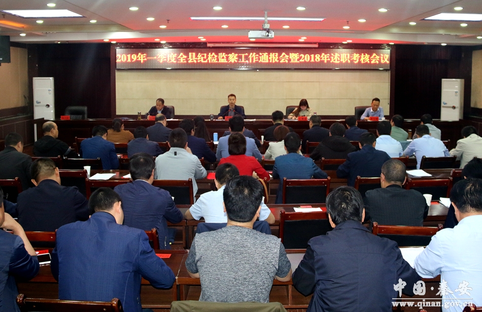 4月29日,秦安县纪委监委召开2019年一季度全县纪检监察工作通报会暨2018年述职考核会议,县委常委、县纪委书记、县监委主任邓晓东主持会议。