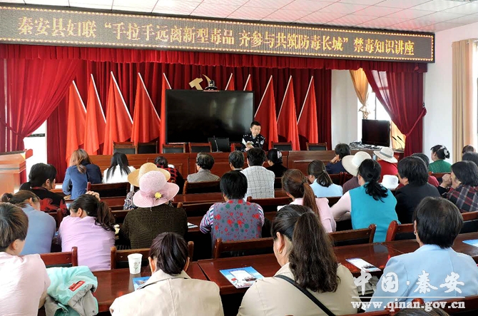 讲座中,秦安县禁毒办民警从毒品的概念、新型毒品的种类、毒品的巨大危害性方面做了介绍;从人们吸毒的原因、吸毒成瘾以及毒瘾发作时的表现和禁毒法律、政策做了讲解;民警结合兴丰镇人口大量常年外出的实际情况,从人们吸毒后的特征出发,教广大妇女朋友如何辨别家人是否吸食了毒品,最后民警列举了3起实际案例,深入浅出的讲解了毒品以及吸食毒品对自己对家庭对社会的无尽危害,同时,针对如何预防毒品进行了知识普及。