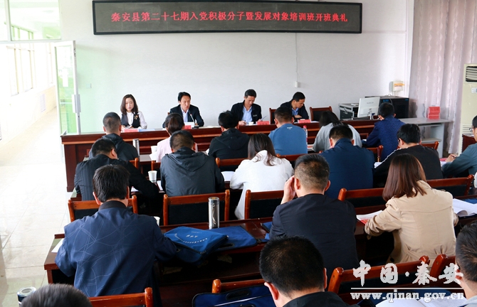 5月28日,由秦安县委直属机关工委和县委党校联合举办的全县第二十七期入党积极分子暨发展对象培训班在县委党校开班。县委组织部、县直机关工委、县委党校负责人,县委直属机关工委所属各级党组织的入党积极分子和发展对象参加了开班仪式。