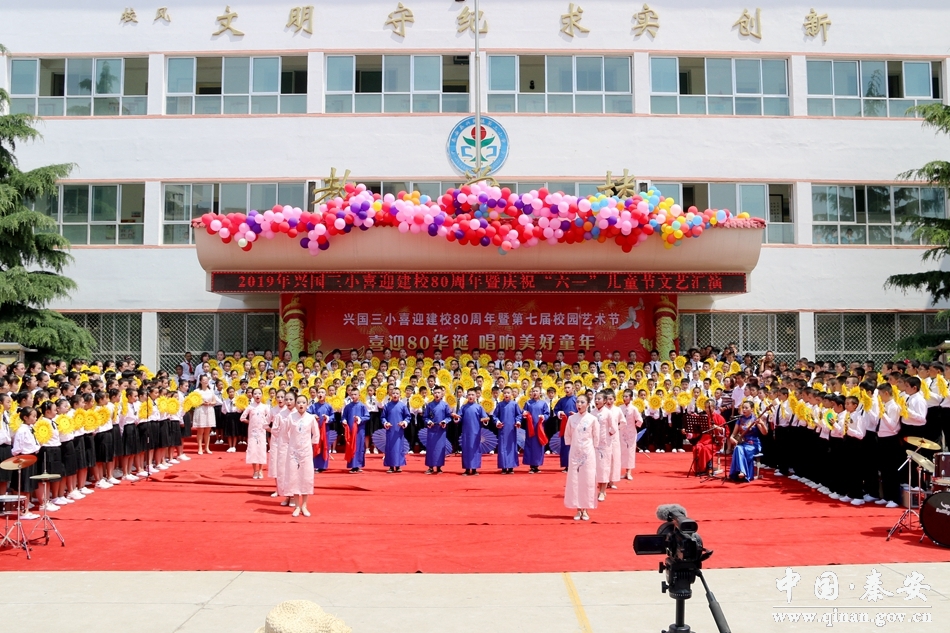 兴国二小举行了以“我和我的祖国”为主题的喜迎祖国70华诞暨第八届校园艺术节文艺汇演。演出中,孩子们载歌载舞,将整个校园装扮成了一个歌舞飞扬、欢歌笑语的世界。舞蹈《七彩阳光》,情景舞蹈剧《我们的民族小学》,《秦腔联唱》等节目先后亮相,精彩的演出充分展现了二小学子们朝气蓬勃、昂扬奋进的精神风貌。