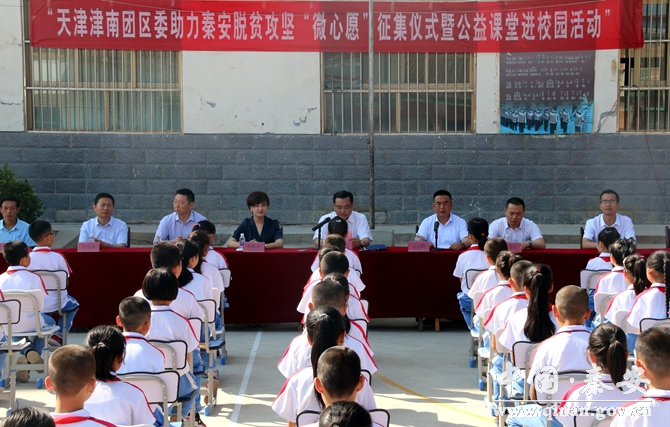 7月10日,天津津南团区委在秦安县王尹镇中心小学举行了以“满足孩子小小心愿,助力秦安脱贫攻坚”为主题的“微心愿”征集仪式暨公益课堂进校园活动。