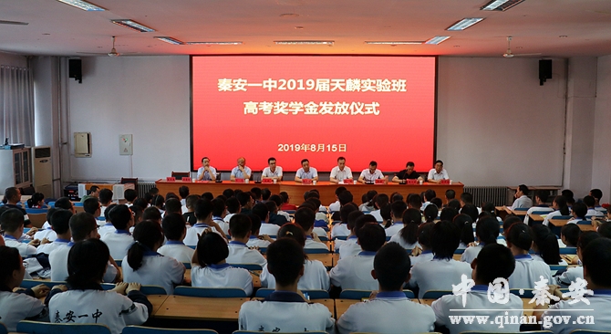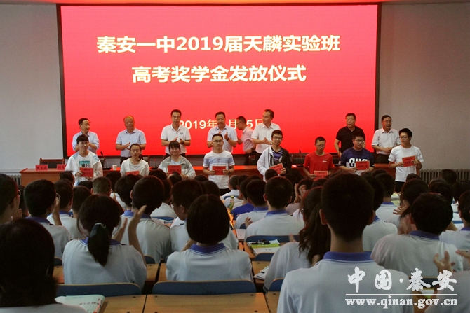 8月15日,由甘肃天麟房地产开发集团有限公司资助的2019届天麟集团实验班高考奖学金发放仪式在秦安县一中举行,47名优秀的高中毕业生和160名在校学生获得了资助。